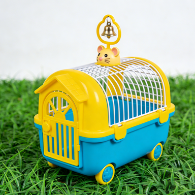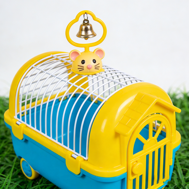 Како што е прикажано на сино-жолтата слика од кафезот за миленичиња, специјално дизајниран за мали миленичиња, со симпатична декорација на главата на глувчето и златно ѕвоно. Цена на големо 12-15 $/единица (врз основа на MOQ), минимална нарачка 100 единици, приспособување на функцијата за поддршка и приватно означување.
